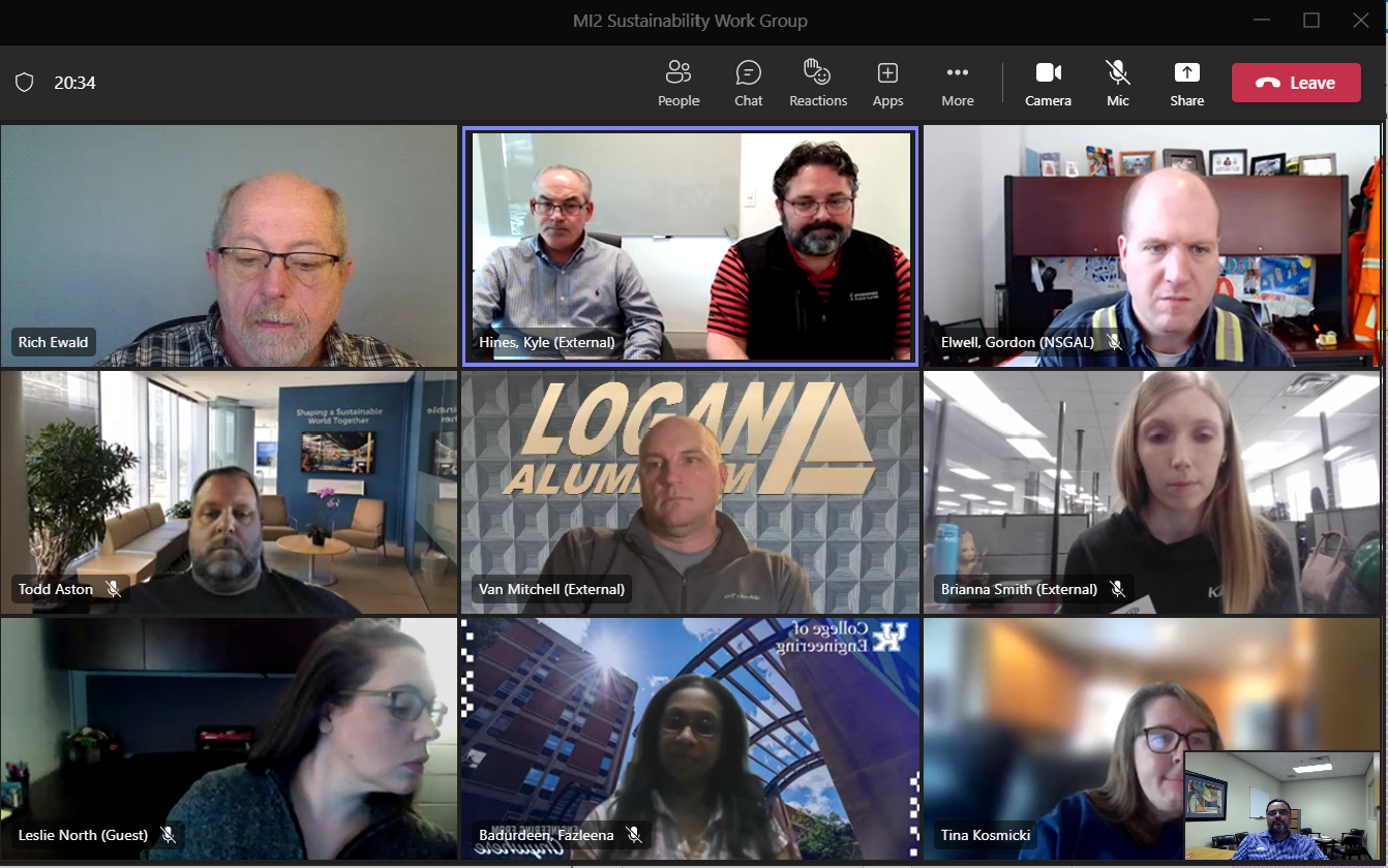 - Sustainability: The Sustainability Working Group is focused on creating and fostering collaboration among the members of the Metals Innovation Initiative to make the metals industry the most sustainable industry sector in Kentucky and for the Bluegrass State to top the nation in sustainability in the industry. We will also work to aggregate proven data from the industry that demonstrates success toward these goals and ensure those stories are told in ways that inspire our various stakeholder audiences as we strive to achieve our mission.